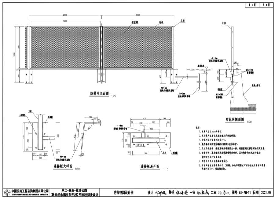 2.本防抛网适用于采用混凝土护栏的桥梁。