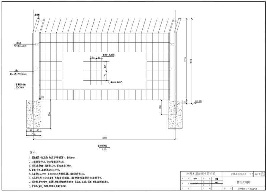 1、围墙范围、长度详见《光伏区总平面布置图》,单位为mm。