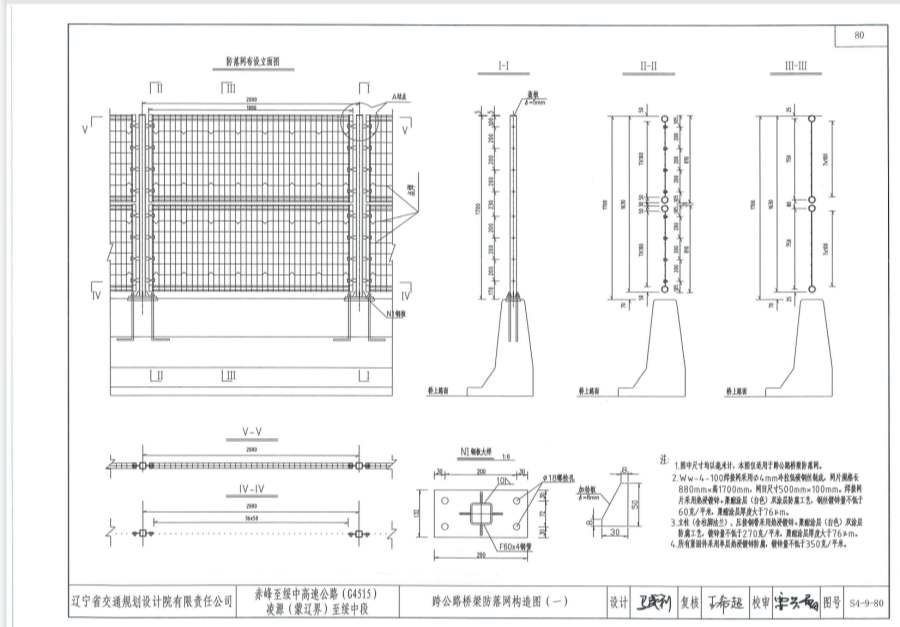 1.图中尺寸均以毫米计,本图适用于跨公路桥梁防落网。