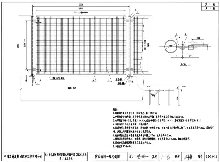 G59呼北高速湖南省新化至新宁段XXSJ03标段第3施工标段Bf-Ww-B-1防落物网生产厂家