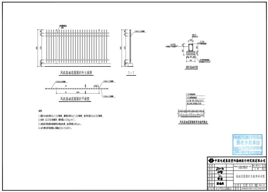 1.围栏立柱采用60x1.5方钢管,横梁采用40x1.0方钢管,竖杆采用20x0.8方钢管。