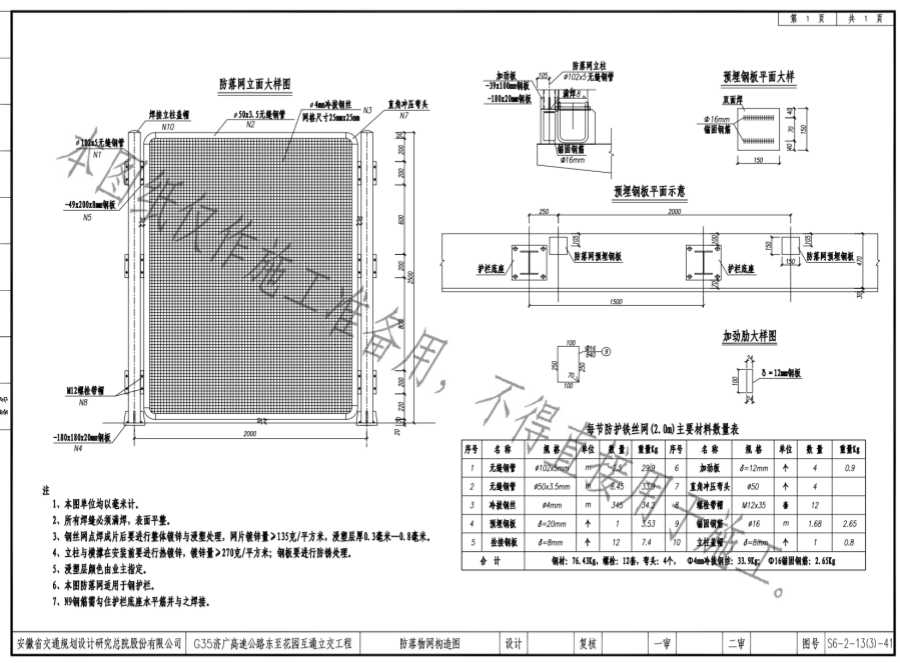 6、本图防落网适用于钢护栏。