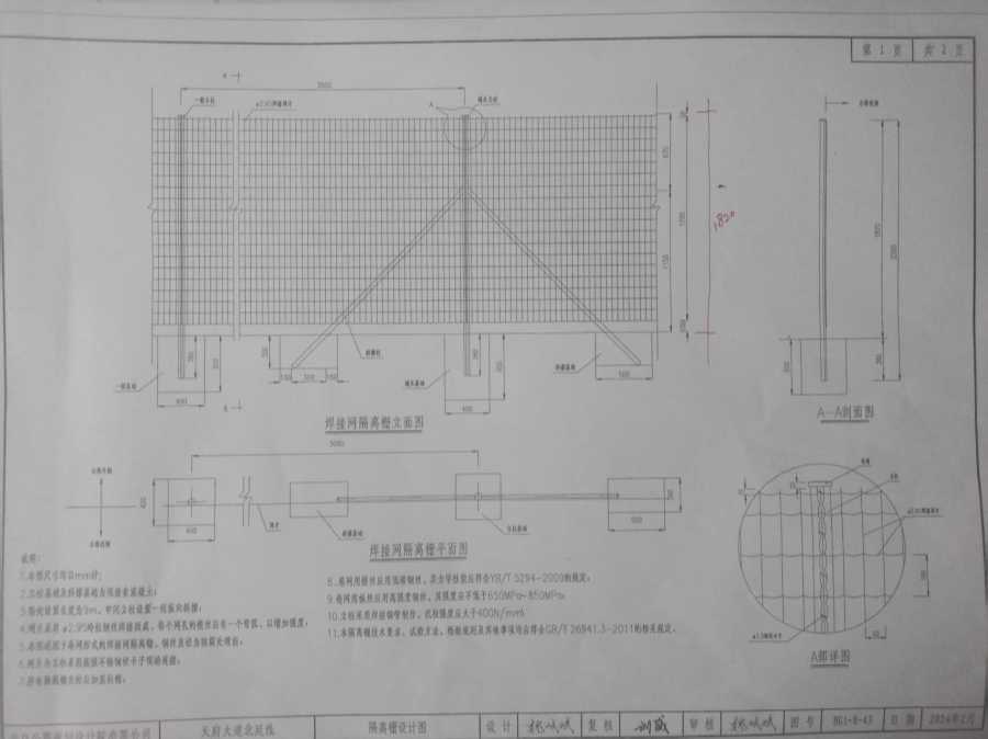 5.本图适用于卷网形式的焊接网隔离栅,钢丝直径为防腐处理前。
