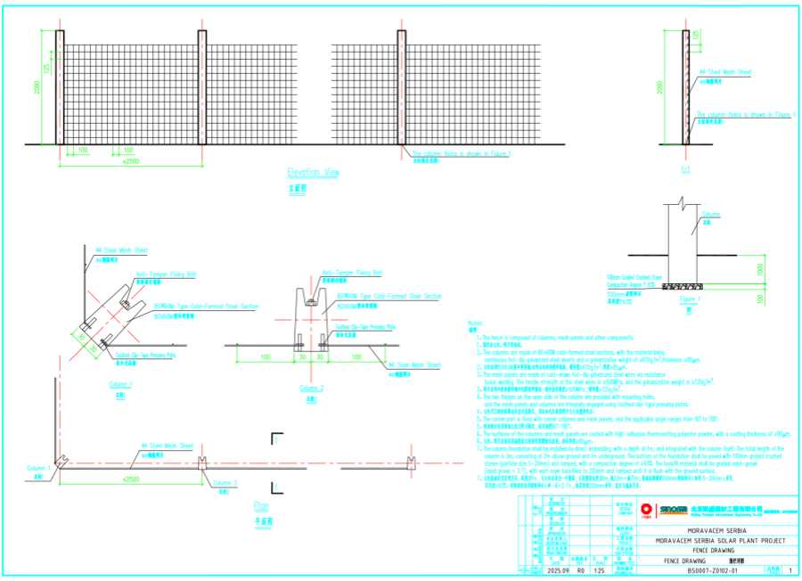 7、立柱基础采用直埋方式,深度为1m,与立柱本身为一个整体,立柱整体长度为3m,地上2m+地下1m;基础底部铺设100mm级配碎石(粒径5-20mm)夯实,压实度≥93%。回填材料采用级配砂石(砂:石=3:7),每层回填200mm夯实,直至与地表平齐。